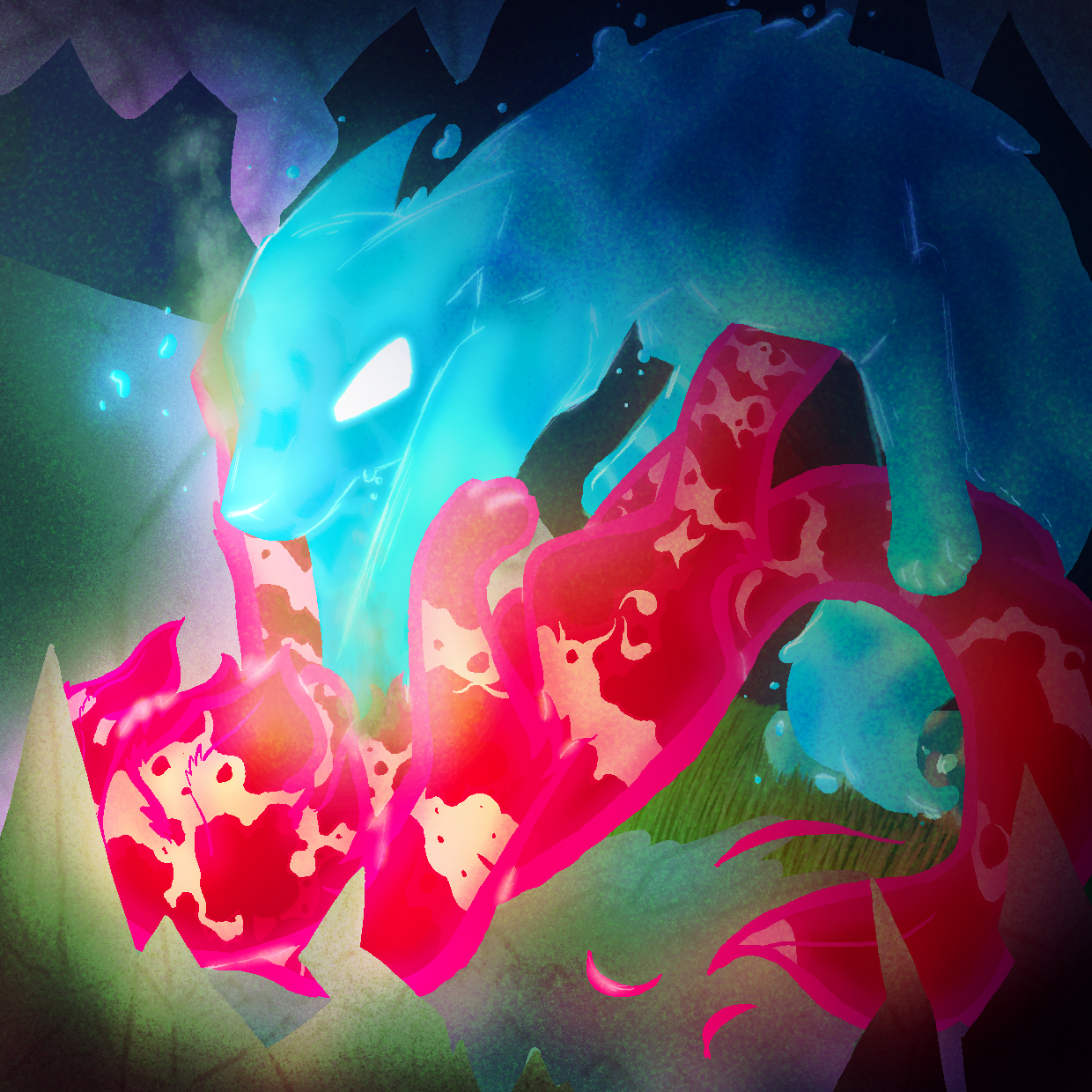 " Canines are very active creatures, so movement through a fight could work well for this. Plus, making the canines out of liquid -like substance helps bring out the flow of said movement."
